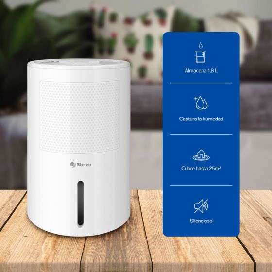 Evita que la humedad se propague y que aparezcan bacterias, moho y otros agentes de enfermedades y alergias, como tos, problemas respiratorios y congestión nasal. Además, protege y prolonga la vida útil de tus aparatos electrónicos y muebles.Capacidad: Incorpora un tanque de 1,8 litros que tiene un sensor para apagar el deshumidificador automáticamente cuando esté lleno.